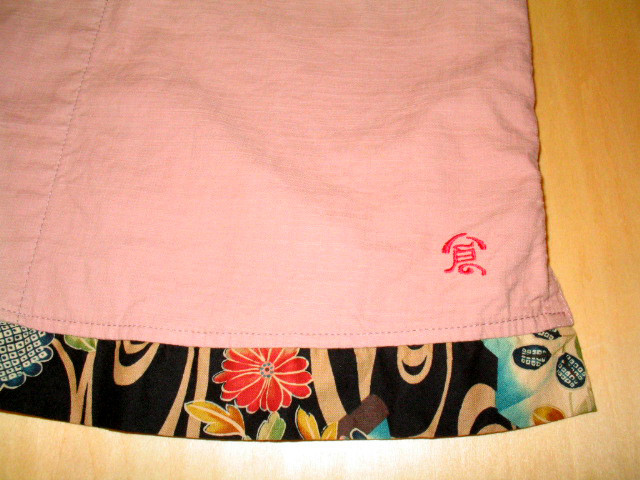 左裾に赤い糸で施した「倉」の刺繍がワンポイントになっていますね。
