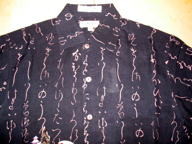 地柄に竹の模様を織り込んだジャガードシルク生地を用いた半袖シャツの前後に柄を配しています。