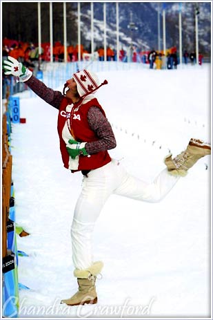 後ほど、調べてみたら彼女はCHANDRA CRAWFORDという選手で、ナント昨年行われたトリノオリンピックの女子クロスカントリー1.1kmスプリントで金メダルをとっているではないですか!!!