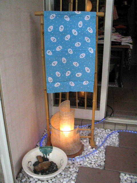 赤い南天の実で目を入れ、笹で耳を形取っています。