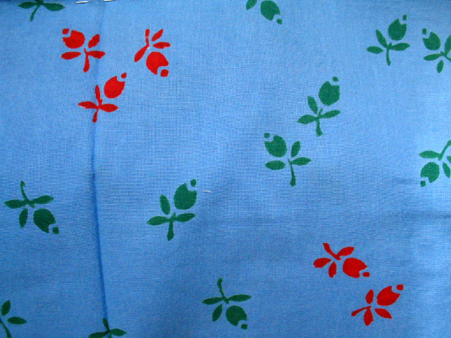 赤と緑で先の膨らんだ蕾も柄を散りばめています。