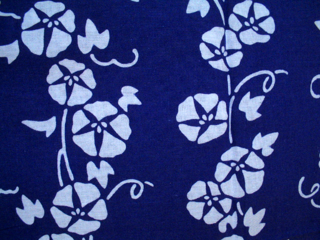 青紫色の地色に、白で抜いた朝顔の花と蔓を繋げ