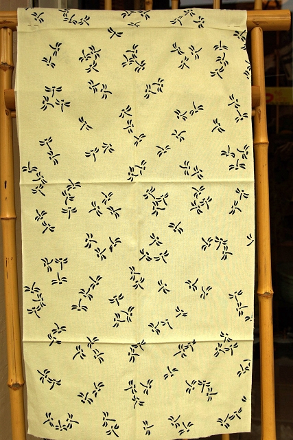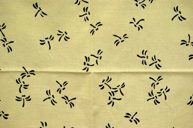 薄いベージュの地色に、黒色で小さなトンボの柄を散りばめています。