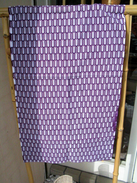 紫色の地色に白で矢羽の柄を抜いています。