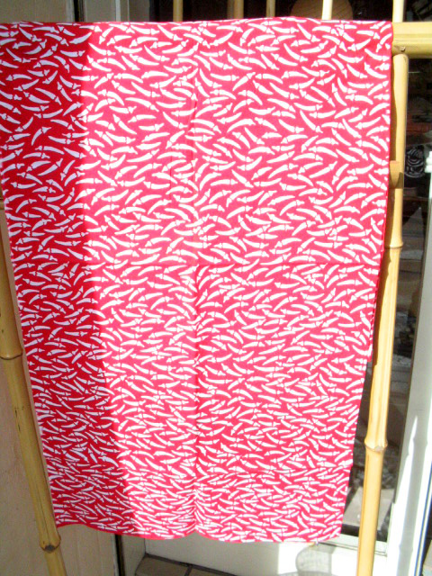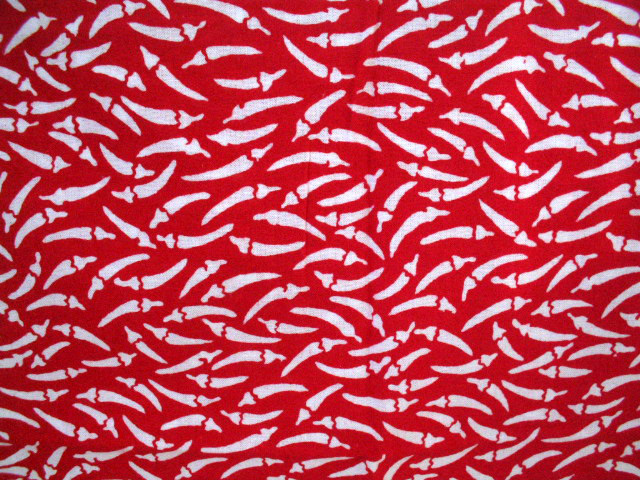 赤い地色を小さな唐辛子の柄で白く抜いています。
