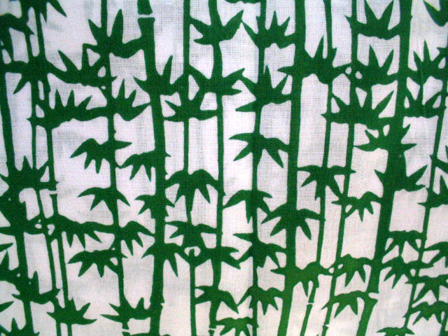 白地に鮮やかな緑で竹の幹と葉を描いています。