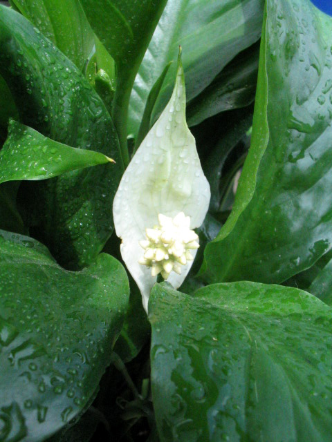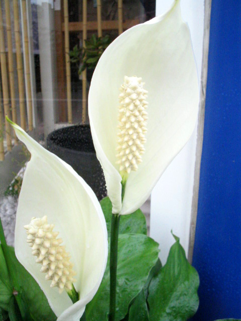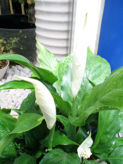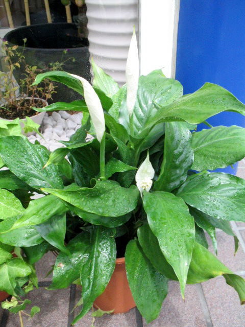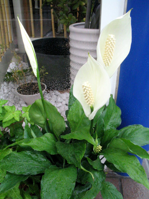 先日、お伝えした玄関ポーチを飾るスパティフィラムさんですが