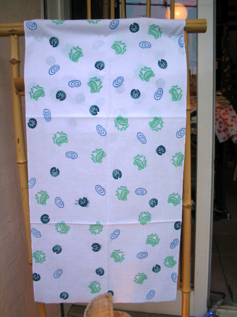 そんな雨の続く、今週の手ぬぐいは「蛙」です。