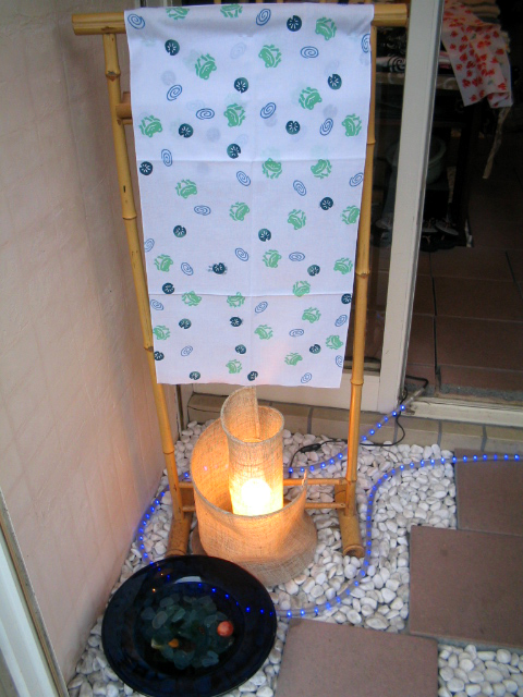 最初は、店の玄関に置いているガラスの水盤の場所に