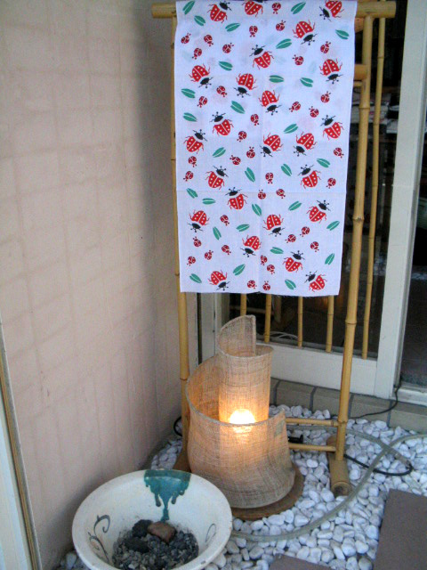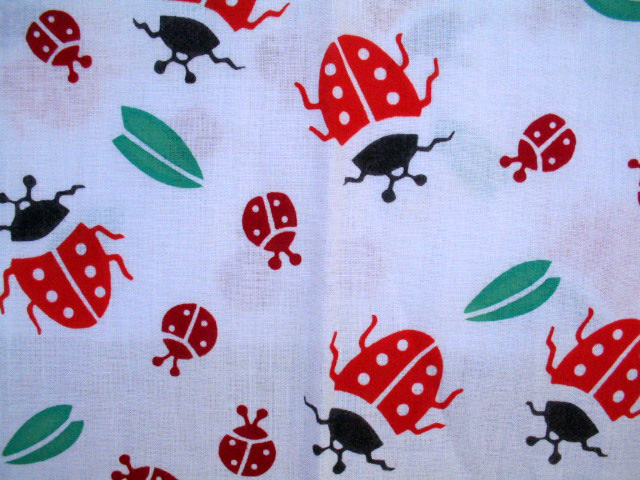 白地に鮮やかな赤と黒で大きなテントウ虫を形取り