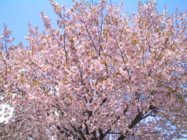 ようやく咲いた遅咲きの桜も散ってしまいそうです。