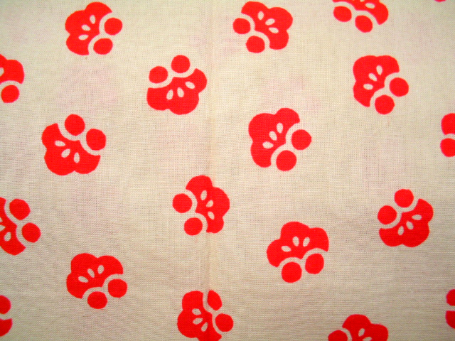 鮮やかな紅色で梅の花の柄を散りばめています。