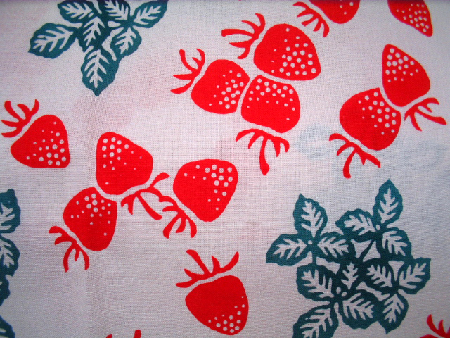 赤で苺が群生している柄を散りばめ、